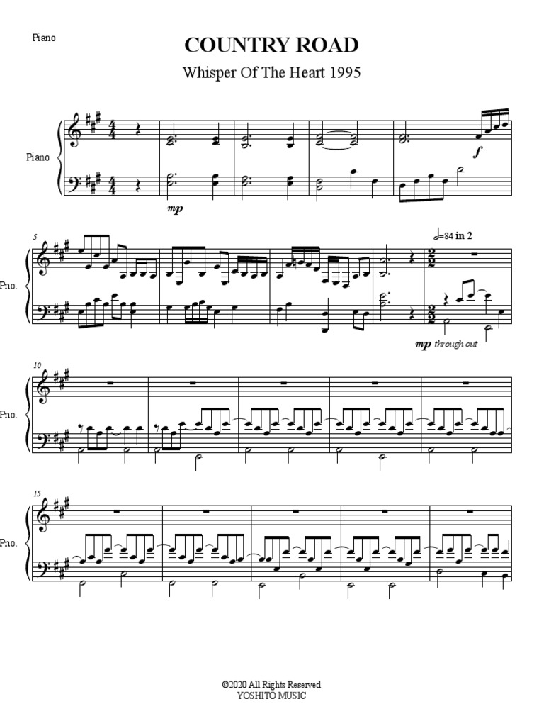 21+ Whisper Of The Heart Country Road Piano Sheet Music Gif. Upload your own music files. Country road | ghibli relaxing piano (arr.