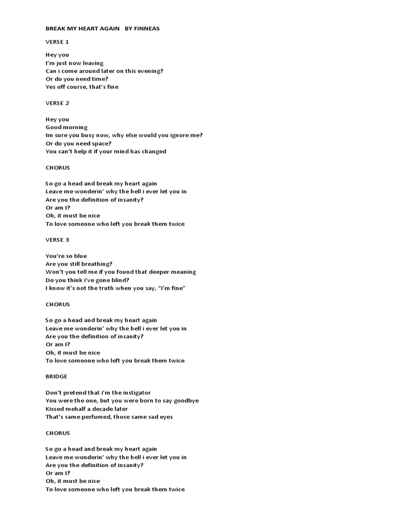 Get Break My Heart Again Finneas Piano Sheet Music Pdf Pics. Print and download break my heart again sheet music by finneas. Aprenda a tocar a cifra de break my heart again (finneas) no cifra club.